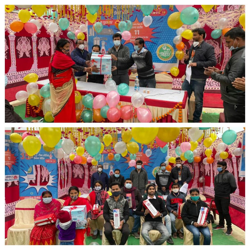 समय पर टीका का लगाने वाले लाभार्थियों के लक्की ड्रा के द्वारा विजेताओं को मिला तीसरे सप्ताह का पुरस्कार
