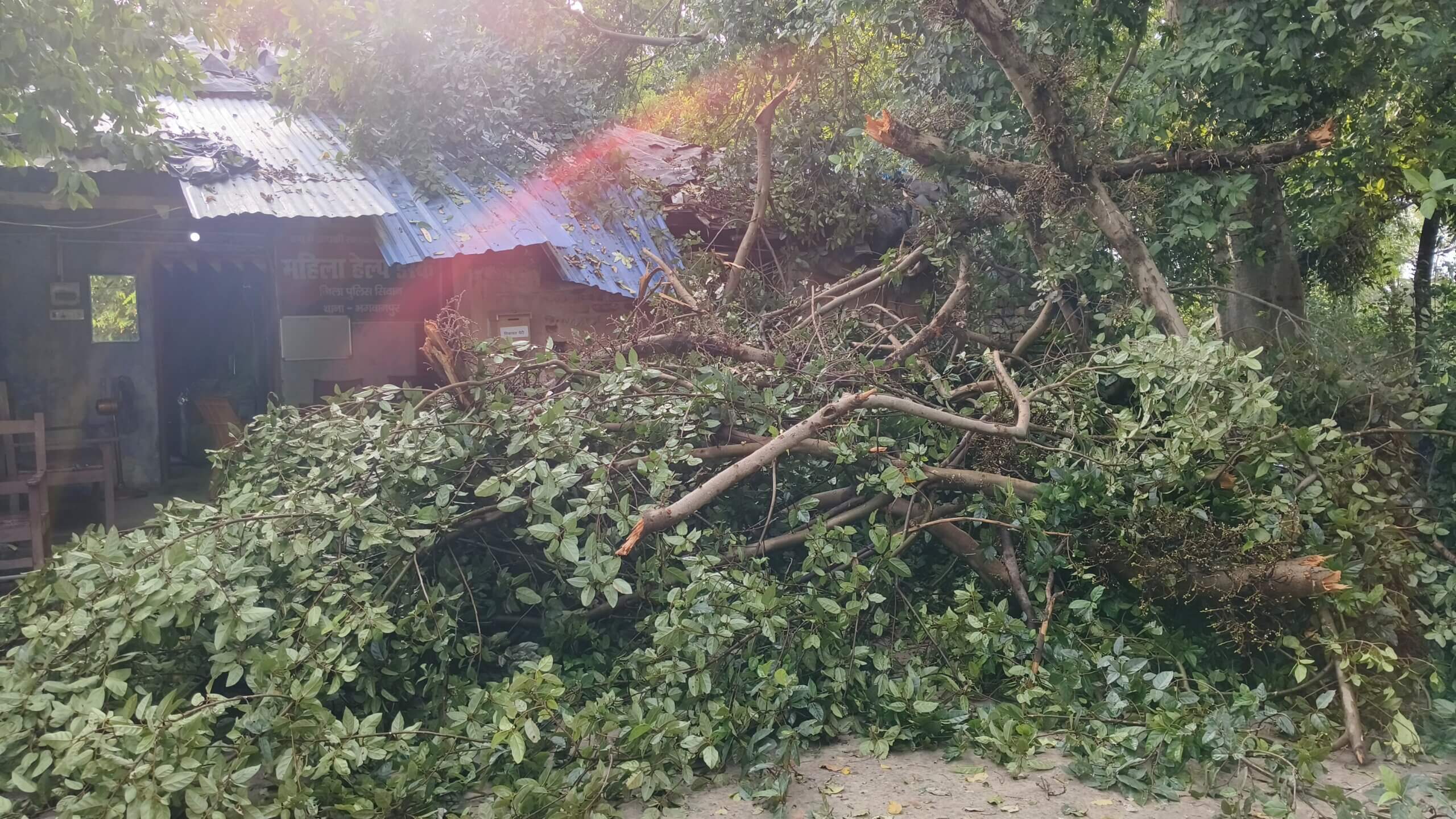भगवानपुर हाट(सीवान)सोमवार को अचानक आई आंधी-पानी से थाना क्षेत्र में कई पेड़ गिर गए। थाना भवन के सामने खड़ा गूलर का पेड़ टूटकर भवन पर गिर पड़ा। इससे थाना भवन का करकट टूट गया। परिसर में खड़ी कई बाइकें क्षतिग्रस्त हो गईं। एक बाइक चौकीदार की थी। गनीमत रही कि कोई पुलिसकर्मी घायल नहीं हुआ। पेड़ गिरने से पुलिसकर्मी घबरा गए। थाना भवन पहले से जर्जर है। ऐसे में इसके और क्षतिग्रस्त होने का खतरा बना रहता है।