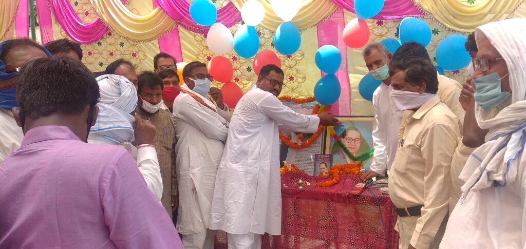 उन्होंने ने कहा कि जबतक समाज से जाति व्यवस्था खत्म नहीं होती है तबतक बाबा साहेब का सपना साकार नहीं होगा।वही सरसैया गांव में छोटे छोटे बच्चों ने सोसल डिस्टेंसिग का पालन करते हुए बाबा साहेब के चित्र पर माल्यार्पण कर नमन किया।पंडित के रामपुर गांव में बुद्ध प्रज्ञा कोचिंग सेंटर पर बच्चों के बीच धीरज कुमार व डॉ. मनोज कुमार द्वारा कॉपी कलाम का वितरण किया गया।इस मौके पर सोसल डिस्टेंसिग का पालन करते हुए पूर्व मुखिया राजेन्द्र सिंह,जफर अली,राजू कुमार राम,प्रो.रामयोध्या प्रसाद,नन्दलाल बौद्ध, प्रभु राम,रामेश्वर राम,शिक्षिका ममता कुमारी, तैयब अली,मोहम्मद मुस्तफा,संतोष चौहान, हरेराम चौहान,अरविंद कुमार, अजय कुमार आदि ने बारी बारी से चित्र पर माल्यार्पण किया।