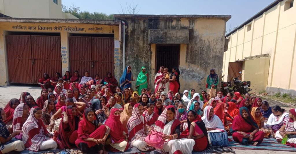 अपनी मांगों को लेकर आंगनबाड़ी संघर्ष समिति ने दिया धरना