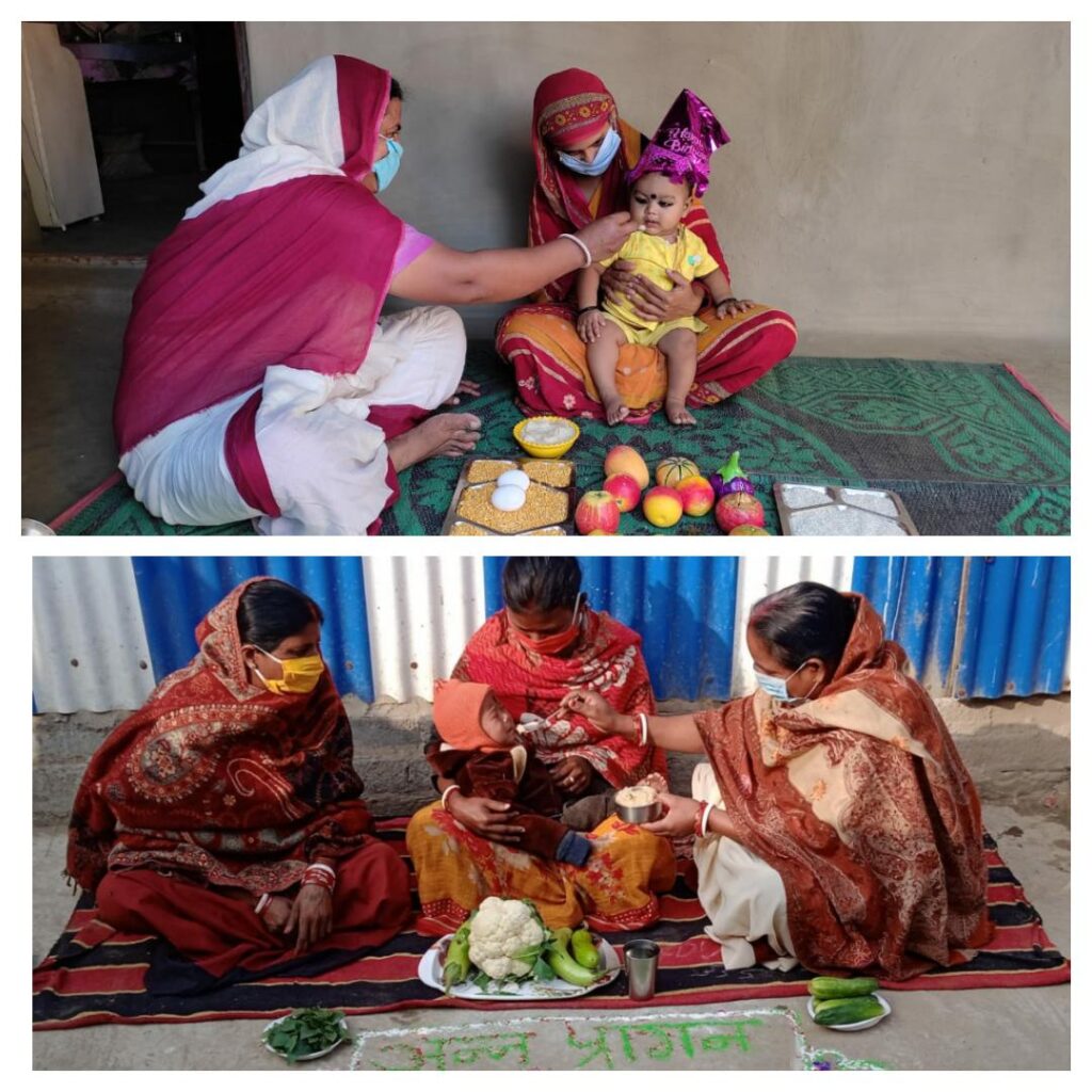 कटिहार(बिहार)शिशुओं के सर्वांगीण विकास के लिए स्तनपान के साथ ही उन्हें बेहतर अतिरिक्त ऊपरी आहार का दिया जाना जरूरी होता है। इसके लिए हर माह आंगनवाड़ी केंद्रों में अन्नप्राशन दिवस का आयोजन किया जाता है। बुधवार को भी जिले के सभी सेविकाओं द्वारा कोरोना प्रोटोकॉल का पालन करते हुए लोगों के घर-घर जाकर अन्नप्राशन दिवस का आयोजन किया गया। जिस दौरान सेविकाओं द्वारा अपने पोषक क्षेत्र में छः माह की उम्र पूर्ण करने वाले बच्चों को खीर खिलाकर उनके पोषण की शुरुआत की गई।