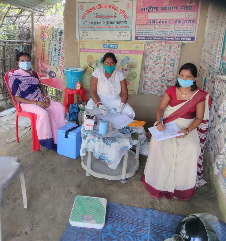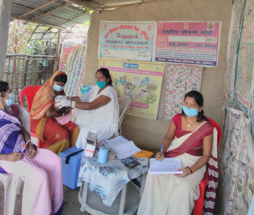 पूर्णियाँ(बिहार)गर्भवती महिलाओं और शिशुओं के अच्छे स्वास्थ्य के लिए समेकित बाल विकास परियोजना (आईसीडीएस) द्वारा सप्ताह में दो दिन ग्रामीण स्वास्थ्य, स्वच्छता एवं पोषण दिवस जिसे आरोग्य दिवस भी कहते हैं, इसका आयोजन किया जाता है. इस दौरान आंगनवाड़ी केन्द्रों पर एएनएम द्वारा क्षेत्र के सभी महिलाओं और शिशुओं का टीकाकरण किया जाता है। बुधवार को भी आरोग्य दिवस का आयोजन किया गया, जिसमें टीकाकरण के साथ महिलाओं को पोषण और परिवार नियोजन के स्थायी व अस्थायी तरीकों की भी जानकारी दी गई।
