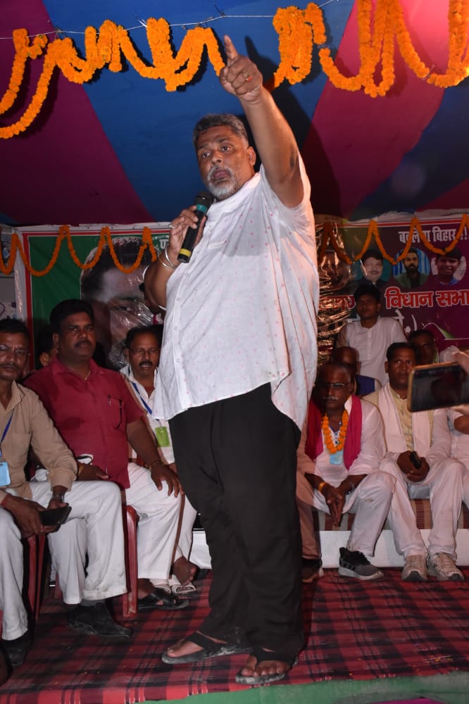 कार्यक्रम में शामिल होने से पूर्व पप्पू यादव ने एस बी टाइल्स उद्योग अरुआ का उद्घाटन किया।उन्होंने ने मिलन समारोह को संबोधित करते हुए केंद्र सरकार पर हमला बोलते हुए कहा कि केंद्र की सरकार पूंजीपतियों के लिए अध्यादेश लेकर आई है।इसके खिलाफ देश किसान सड़को पर प्रदर्शन कर रहे है।उन्होंने ने कहा कि केंद्र की सरकार की स्मार्ट सिटी योजना, जीएसटी का पैसा,बाढ़ का पैसा आदि सरकार नहीं दिया है। लेकिन जब चुनाव सामने है तो केंद्र की सरकार प्रतिदिन योजनाओं का शिलान्यास कर लोगों को धोखा देने का काम कर रही है ।