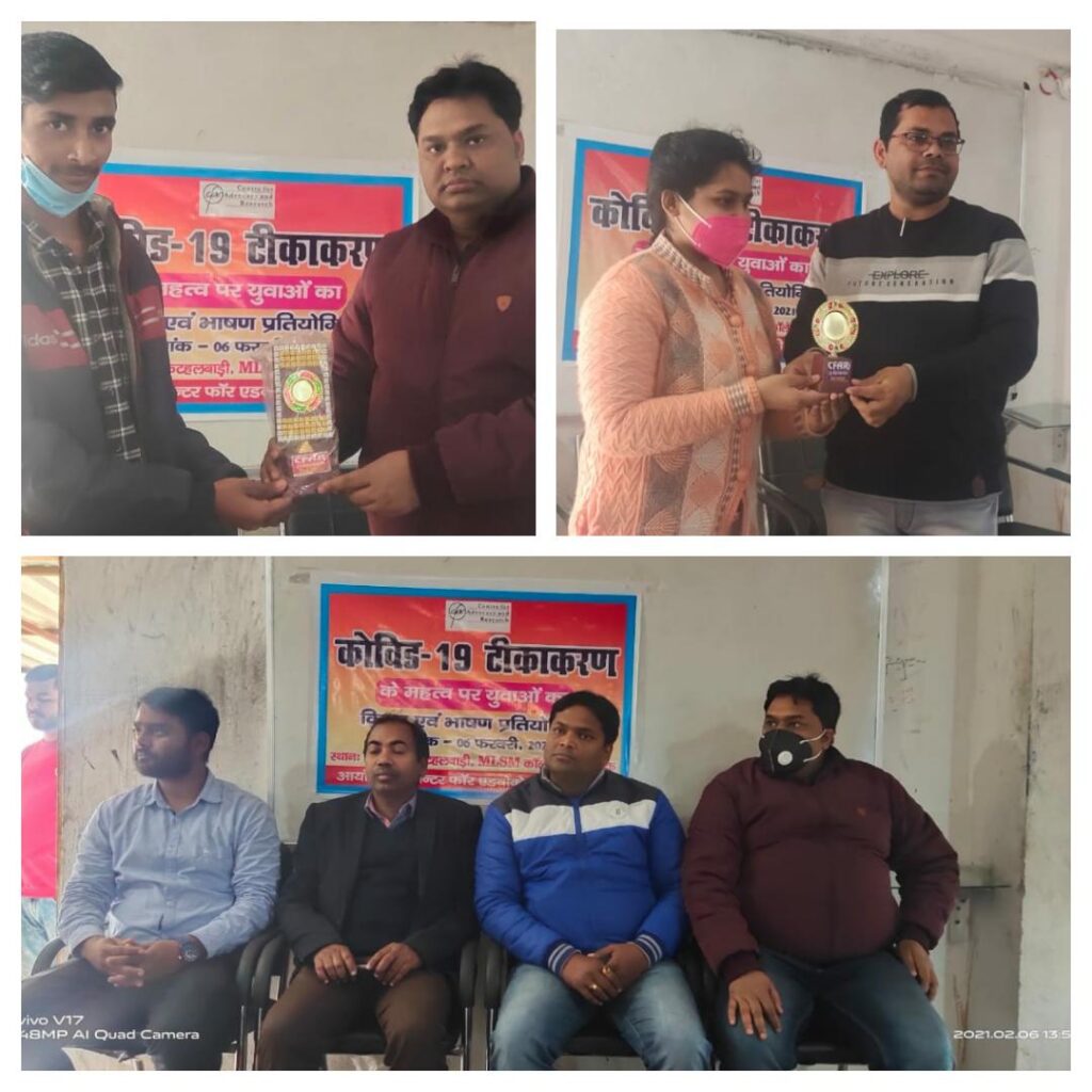 कार्यक्रम की शुरुआत करते हुए सेंटर फॉर एडवोकेसी एंड रिसर्च के डिवीजनल कोऑर्डिनेटर प्रोग्राम अमन कुमार ने कहा युवाओं की सक्रियता एवं सहभागिता हमेशा ही बड़े बदलाव की सूत्रधार बनती है। उन्होंने प्रतियोगिता में युवाओं की कोरोना पर जागरूकता की प्रशंसा करते हुए कहा कि इस छोटे से जगह पर भी युवाओं के बीच कोरोना को लेकर बहुत जानकारी है। उन्होंने कहा कि युवाओं की यह जागरूकता उन तक सीमित न होकर परिवार, समुदाय एवं जिले तक पहुंचे। उन्होंने कहा कि कोविड-19 टीकाकरण होने से पूर्व जागरूकता ही सबसे बड़ा हथियार है, जो युवाओं के माध्यम से समुदाय तक पहुंच सकती है। मौके पर विशाल कुमार, अजीत कुमार, अजय कुमार, रिंकेश कुमार, कृष्णा, मनीष कमती आदि मौजूद थे।