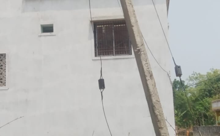मुख्य चौराहे पर झुके बिजली के पोल से खतरा