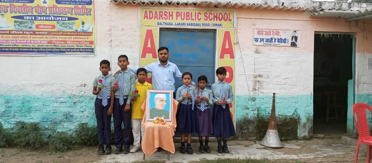 आदर्श पब्लिक स्कूल में बाल दिवस पर बच्चों के बीच शिक्षण सामग्री का वितरण