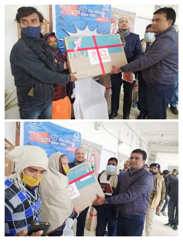 मधेपुरा(बिहार)कोरोना संक्रमण से बचाव के लिए जहां एक ओर जिले में अभियान चलाकर लोगों का टीकाकरण किया का जा रहा है।तो दूसरे तरफ़ कोरोना टीके की दूसरी डोज समय से लेने वालों को जिला प्रशासन एवं स्वास्थ्य विभाग के द्वारा पुरस्कृत भी किया जा रहा है।