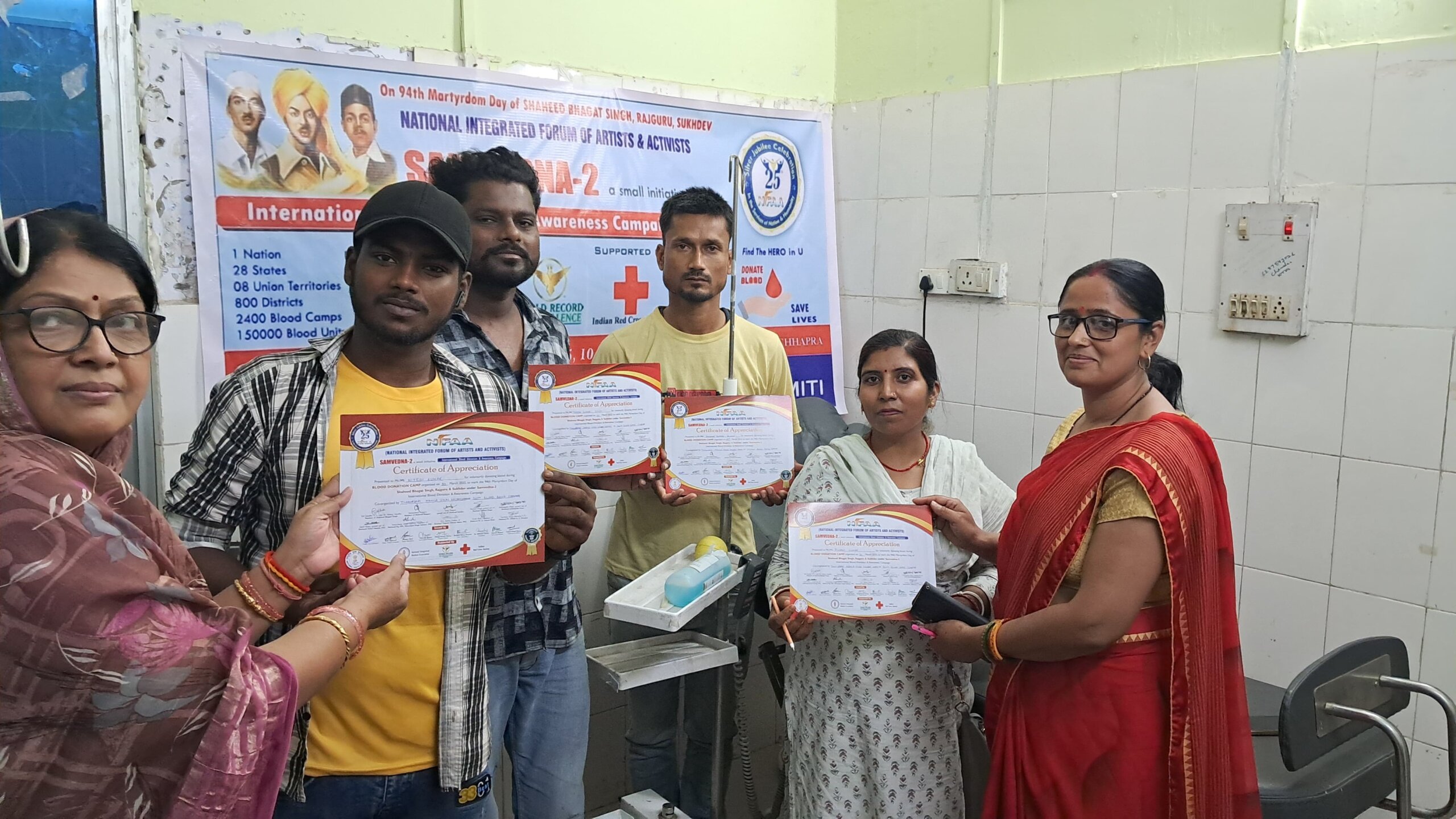 नेशनल इंटीग्रेटेड फोरम ऑफ आर्टिस्ट्स एंड एक्टिविस्ट्स (निफा) छह बार गिनीज बुक ऑफ रिकॉर्ड में नाम दर्ज करा चुका है। संस्था को राष्ट्रीय युवा पुरस्कार भी मिल चुका है।संवेदना 2 अभियान के तहत भारत और विदेशों में कुल 2400 शिविर लगाए जा रहे हैं। लक्ष्य डेढ़ लाख यूनिट रक्त संग्रह का है। पहले यह अभियान 30 मार्च तक था, अब इसकी तारीख बढ़ाकर 12 अप्रैल कर दी गई है।