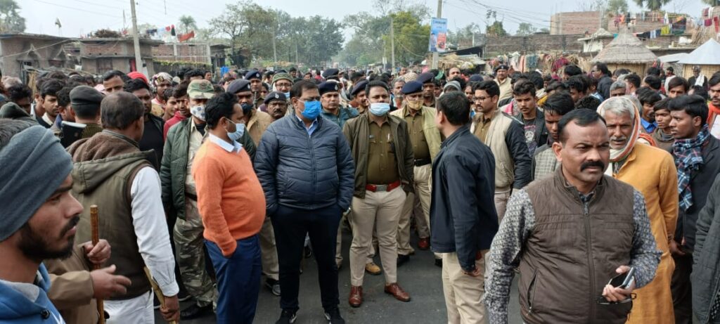 शुक्रवार की सुबह छह बजें मृतक के परिजन व ग्रामीणों ने स्टेट हाईवे 73 कन्हौली बाजार पर शव रखकर जाम लगा दिया।जाम की जानकारी मिलने पर पुलिस निरीक्षक राम बालेश्वर राय व थानाध्यक्ष राकेश कुमार पुलिस बल के साथ पहुंचे और भीड़ को समझने बुझाने की कोशिश की लेकिन आक्रोशित लोगों ने वरीय पदाधिकारियों की बुलाने की मांग पर अड़े रहे ।काफी जद्दोजहद करने बाद एसडीओ संजय कुमार व एएसपी पोलस्त कुमार के समझाने बुझाने के बाद ग्रामीणों ने सड़क को खाली किया।