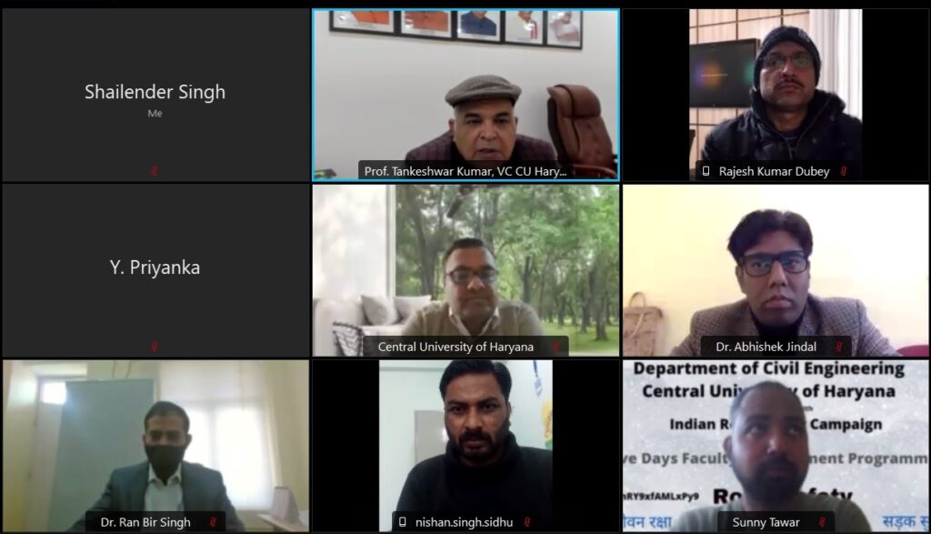 महेंद्रगढ़:हरियाणा केंद्रीय विश्वविद्यालय (हकेवि),में इंडियन रोड़ सेफ्टी केम्पेन के सहयोग से पाँच दिवसीय फैकल्टी डेवलपमेंट प्रोग्राम (एफडीपी) की शुरुआत मंगलवार को हुई । कार्यक्रम को संबोधित करते हुए विश्वविद्यालय के कुलपति प्रो. टंकेश्वर कुमार ने कहा कि सड़क सुरक्षा के प्रति हर नागरिक को जागरुक होने के साथ-साथ जिम्मेदार भी बनना होगा। उन्होंने कहा कि ‘सड़क सुरक्षा, जीवन सुरक्षा’ के नारे के साथ आयोजित इस कार्यक्रम के माध्यम से अवश्य ही प्रतिभागियों को सड़क सुरक्षा के लिए आवश्यक नियमों, प्रयासों व व्यावहारिक पक्षों को जानने-समझने का अवसर प्राप्त होगा। कार्यक्रम के पहले दिन इंडियन रोड़ सेफ्टी केम्पेन के मानस चौधरी व दीपांशु गुप्ता ने इस अभियान के महत्त्व से अवगत कराया। विशेषज्ञ वक्ता के रूप में आईसीटी प्राइवेट लिमिटेड के अध्यक्ष प्रो. पी.के. सिकदर व आईआईटी जम्मू के डॉ. अंकित कथूरिया ने संबोधित किया।