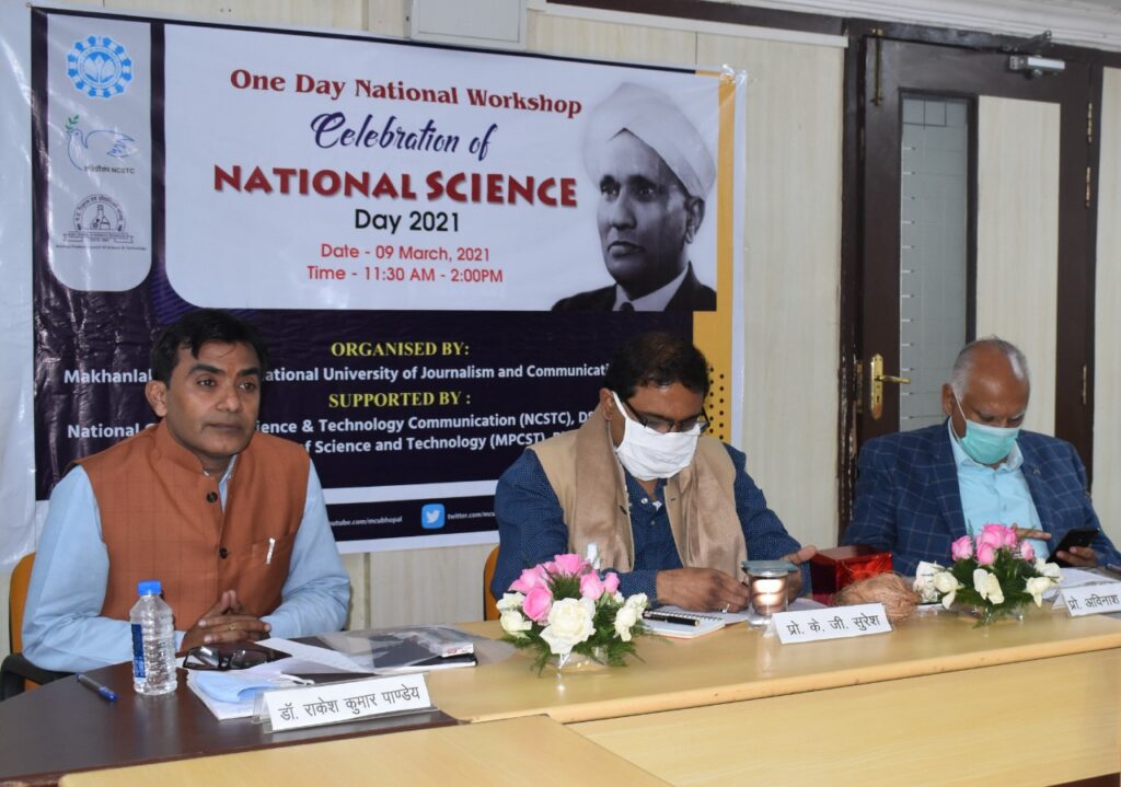 मंगलवार को माखनलाल चतुर्वेदी राष्ट्रीय पत्रकारिता एवं संचार विश्वविद्यालय, राष्ट्रीय विज्ञान एवं प्रौद्योगिकी संचार परिषद नई दिल्ली एवं म.प्र. विज्ञान एवं प्रौद्योगिकी परिषद के सहयोग से आयोजित राष्ट्रीय विज्ञान दिवस उत्सव के अवसर पर डॉ. मिश्रा ने कहा सुपरसोनिक क्रूज ब्रह्मोस मिसाइल विश्व की सबसे आधुनिक मिसाइल है जो भारत के स्वाभिमान, आत्मनिर्भरता और क्षमता की एक सफल कहानी है। 1001 करोड़ रुपए की पूंजी से प्रारंभ हुई यह ब्रह्मोस परियोजना आज 20 हजार लोगों को रोजगार दे रही है, 40000 करोड़ का टर्नओवर है और 4000 करोड़ टैक्स का सरकार को दे रही है। भारत का स्पेस साइंस और फार्मा सेक्टर तेजी से बढ़ रहा है। रिसर्च और डिजाइनिंग को मिशन बनाकर हम रेवेन्यू और रोजगार दोनों प्राप्त कर सकेंगे। विज्ञान और तकनीक में कड़ी मेहनत से ही भारत आत्मनिर्भर और सशक्त भी हो सकता है। राष्ट्रीय विज्ञान दिवस उत्सव आयोजन में विशेष वक्ता के रूप में सीएसआईआर की निदेशक डॉ. रंजना अग्रवाल ने कहा कि कोविड काल में भारत ने विज्ञान और तकनीक में साहसिक और उल्लेखनीय काम किया है, जो बताता है कि भारत विश्व का नेतृत्व कर सकता है। विशेष अतिथि के रूप में विज्ञान प्रसार भारत सरकार के वैज्ञानिक अरविंद रानाडे ने कहा कि भारतीय समाज में वैज्ञानिक दृष्टि और वैज्ञानिक शोध को बढ़ावा देने की आवश्यकता है, यही हमारे आत्मनिर्भर भारत की कुंजी है। कार्यक्रम की अध्यक्षता कर रहे विश्वविद्यालय के कुलपति प्रो. केजी सुरेश ने कहा कि हमारे देश में जहां विज्ञान की परंपरा रही है वहीं अंधविश्वास ने नुकसान भी पहुंचाया है। अब हमें वैज्ञानिक दृष्टिकोण बनाने की आवश्यकता है। साइंस टेक्नोलॉजी और इनोवेशन का शिक्षा एवं कौशल विकास में महत्वपूर्ण योगदान लिया जा सकता है। प्रो. सुरेश ने कहा कि एक समय हमारे देश में पीपीई किट और वेंटिलेटर नहीं बनते थे, लेकिन कोरोना काल में हमने इस चुनौती का सामना किया और अब ये सामान हम निर्यात कर रहे हैं। हमारी वैक्सीन भी दुनिया के कई देशों में पहुंच रही है जो गर्व की बात है। कुलपति प्रो. सुरेश ने घोषणा की कि विज्ञान पत्रकारिता को बढ़ावा देने के लिए विश्वविद्यालय एक विज्ञान संचार आधारित एक सर्टिफिकेट कार्यक्रम चलाएगा।