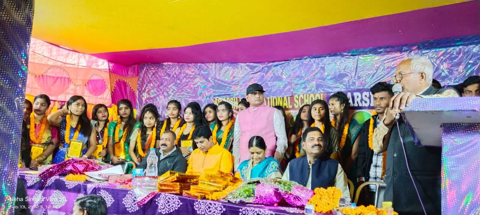 गैंग ऑफ वासेपुर की गायिका रेखा झा ने अपने गाए गीतों से बच्चों का मनोरंजन किया साथ ही अच्छी शिक्षा की पहल करने का आह्वान की।आरंभ में अतिथियों का स्वागत प्राचार्य मीना कुमारी ने किया।साथ ही निदेशक मनोज कुमार ने विद्यालय के भावी कार्यक्रमों की रूपरेखा पर अपने बाते को रखा।समारोह की अध्यक्षता कला संस्कृति पुरुष, विद्यालय परिवार के अध्यक्ष व वरिष्ठ पत्रकार विश्व मोहन चौधरी संत ने किया।मैट्रिक के छात्रों के इस विदाई समारोह में छोटे-छोटे बच्चे के अलावा बड़े-बड़े बच्चों ने भी संगीत नृत्य एवं नाटक से ओतप्रोत सांस्कृतिक कार्यक्रम कर लोगों का भरपूर मनोरंजन किया।जिसमें फिल्मी नृत्य,लोक नृत्य,गजल,भजन और जादू का प्रोग्राम टीचर रंजीत कुमार द्वारा काफी स्तरीय रहा।एक से एक बढ़कर जादू दिखा कर लोगों का भरपूर मनोरंजन किया गया।सबसे आकर्षक “बेटी बचाओ बेटी पढ़ाओ” नाटक दिखा करके लोगों का दिल जीतने का काम छात्र-छात्राओं ने किया।नाटक में भागने वाले कलाकार थे।खुशी,वैष्णवी,भावना,आकांक्षा, अस्मिता,तृप्ति,आरोही,स्मृति,साक्षी आदि।इस अवसर पर विद्यालय परिवार की ओर से बिहार गोल्ड स्टार अवॉर्ड डॉक्टर राजेश कुमार उर्फ राजा को अतिथियों के द्वारा दिया गया।साथी अतिथियों के द्वारा छात्र छात्राओं को मेडल और ट्रॉफी देकर के विदाई समारोह को संपन्न किया गया।सांस्कृतिक कार्यक्रम में जिन कलाकारों ने अपनी प्रस्तुति की उसमें आकांक्षा,सद्भावना,खुशी,सोलंकी, रिया,श्रेया,अनन्या,स्नेहा,गायत्री, शिवानी,अमीषा,तमन्ना, अर्पिता,बादल,आदित्य,अंकित, सत्यम,लुंगी डांस में आक्रांत,संस्कार, प्रिंस,स्वान,पीयूसी,संधि और यश प्रभु थे।घुंगरू टूट गए बोल पर शैली, कोमल,कोमल,आस्था,दिव्या, रिधिमा, सृष्टि,आयुषीआदि बच्चों ने नृत्य शैली का परिचय दिया।मैंने पायल जो खनकाई गाने पर उज्वाला, प्राची,अनुराधा,खुशी,सिमरन,नंदिनी नृत्य की।अन्य छात्रों में रश्मि,तानिया,अर्पणा,माशूका,शिवांगी,अंजलि,पूजा,साक्षी,मुस्कान,नेहा,कुमकुम, सोनम,प्रतिज्ञा,अनुष्का आदि ने भाग लिया।समारोह के अंत में धन्यवाद ज्ञापन सुश्री रिया कुमारी ने किया।