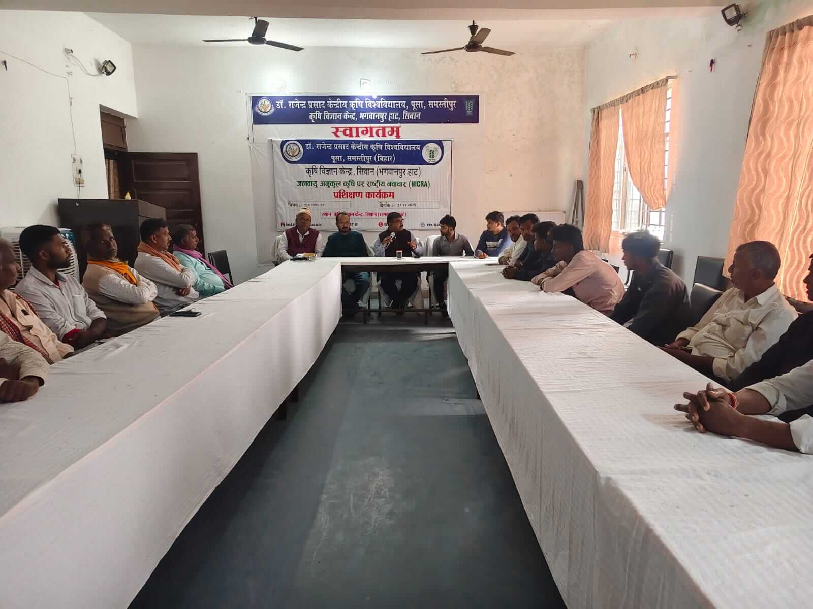 सह अध्यक्ष डॉ.जितेंद्र प्रसाद के अगुवाई में आयोजित की गई ।इस अवसर पर किसानों को बदलते जलवायु के अनुकूल खेती करने का पाठ वैज्ञानिक डॉ. जितेंद्र प्रसाद ने पढ़ाई । उन्होंने कहा कि निक्रा के तहत किसानों को जलवायु को पहचानने । जलवायु के अनुकूल खेती करने,बीज का प्रभेद चयन करने की बात बताई। कृषि अभियंता कृष्ण बहादुर क्षेत्री ने जीरो टिलेज से गेहूं की बोआई करने का सुझाव दिया। उन्होंने कहा कि चुकी जमीन में काफी नमी अभी भी है।शून्य जोताई कर गेहूं की खेती अच्छी की जा सकती है । इस विधि से बीज, उर्वरक का लागत काफी कम होता है। सिंचाई में पानी की कम खपत होती है। मृदा वैज्ञानिक