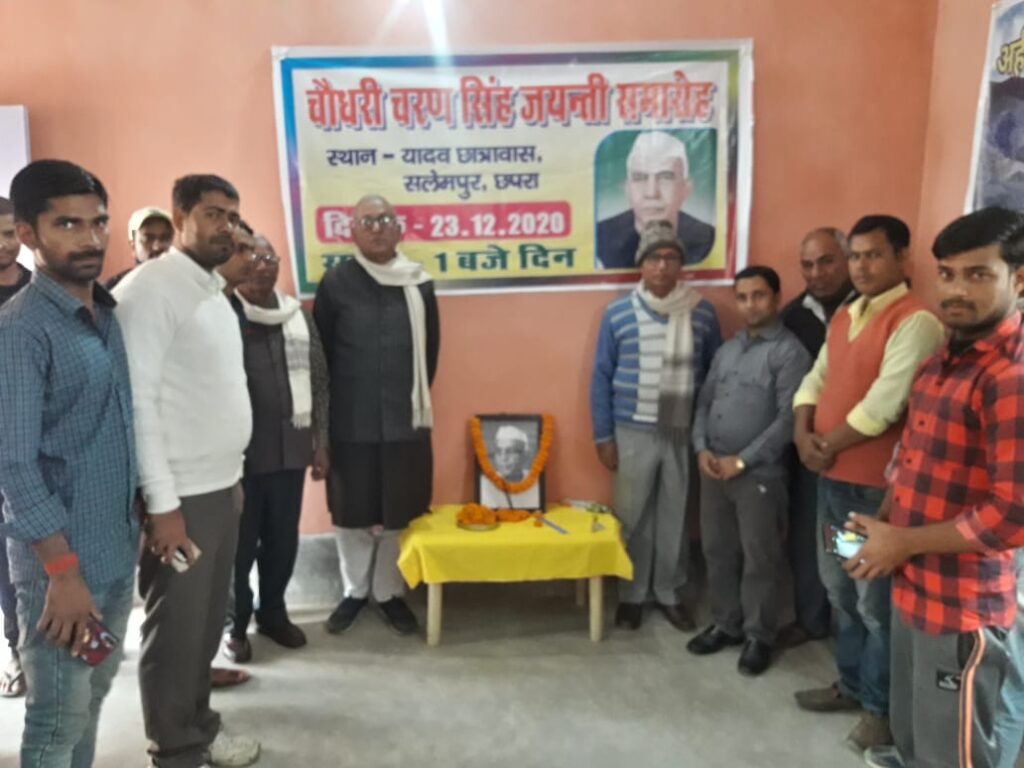 सारण(छपरा)भारत के पूर्व प्रधानमंत्री स्वर्गीय चौधरी चरण सिंह की 118वीं जयंती आज छपरा के सलेमपुर स्थित यादव छात्रावास में मनायी गयी। सबसे पहले चौधरी साहब के तैलचित्र पर माल्यार्पण कर उन्हें भवभिनी श्रद्धांजलि अर्पित की गई। प्रारंभ में कार्यक्रम के आयोजक-संयोजक तथा शिवजनम राय कॉलेज के प्राचार्य अरुण कुमार ने चौधरी साहब के जीवन वृत्त पर संक्षिप्त रूप से प्रकाश डालते हुए उन्हें किसानों का मसीहा बतलाया। उन्होंने कहा कि नई पीढ़ी को चौधरी साहब के आदर्शों को अपने जीवन में उतारने के लिए संकल्प लेना चाहिए। मुख्य वक्ता के रूप में बोलते हुए प्रो. (डॉ.) लालबाबू यादव ने चौधरी साहब के राष्ट्रीय आंदोलन में योगदान से लेकर प्रधानमंत्री तक बनने की विषय पर विस्तृत प्रकाश डाला। उन्होंने कहा कि उत्तर भारत में समाज की 85 प्रतिशत दलित-पिछड़ों के पुनर्जागरण में चौधरी साहब का ही बड़ा योगदान रहा है।उन्होंने आगे कहा कि बिहार, उत्तर प्रदेश, हरियाणा, छत्तीसगढ़, राजस्थान, मध्यप्रदेश, झारखण्ड, उत्तराखण्ड आदि राज्यों में पिछड़े समाज के लोगों के मुख्यमंत्री बनने के पीछे चौधरी चरण सिंह की प्रेरणा काम कर रही है। इस अवसर पर अधिवक्ता शम्भू प्रसाद, सुरेंद्र प्रसाद राय, योगेंद्र यादव, जयनाथ राय, मनोज कुमार, पंकज कु यादव, सतेंद्र कु राय, विजय कुमार तथा बृजकिशोर यादव आदि ने भी चौधरी साहब के प्रति अपना श्रद्धा-सुमन अर्पित किया। यह भी निर्णय किया गया कि प्रतिवर्ष 23 दिसंबर को चौधरी चरण सिंह की स्मृति में वाद-विवाद, क्विज, व्याख्यान एवं राष्ट्रीय स्तर की संगोष्ठियां भी आयोजित की जाएंगी। इस अवसर पर डॉ दिनेश पाल ने चौधरी साहब के प्रति श्रद्धांजलि व्यक्त करते हुए समारोह में शामिल व्यक्तियों के प्रति आभार व्यक्त किया।