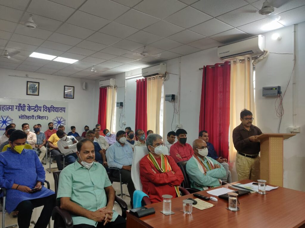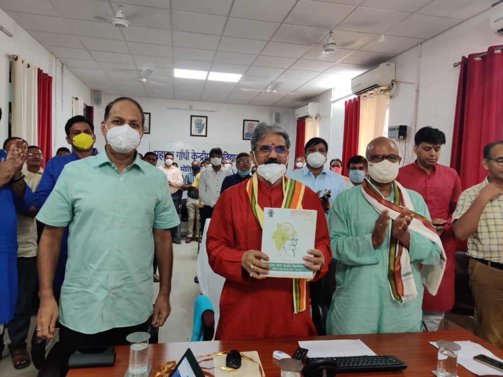 चौथे स्थापना दिवस कार्यक्रम के मुख्य अतिथि प्रो. एडीएन वाजपेयी द्वारा विश्वविद्यालय की वार्षिक पत्रिका ‘ज्ञानाग्रह’ के प्रथम अंक का लोकार्पण भी हुआ। साथ ही कोविड-19 काल में विश्वविद्यालय द्वारा किए गए विभिन्न कार्यक्रमों का प्रतिवेदन, राष्ट्र चिंतक, विचारक श्री कृष्ण गोपाल द्वारा लिखित पुस्तक लघु पुस्तक ‘अध्यात्म भारत की आत्मा है’ का लोकार्पण भी इसी कार्यक्रम में हुआ। इसके अलावा राष्ट्रीय शिक्षा नीति पर विश्वविद्यालय की योजना नामक प्रतिवेदन और महात्मा गांधी सेंट्रल यूनिवर्सिटी जर्नल आफ सोशल साइंसेज के द्वितीय अंक का भी विमोचन हुआ। बतौर मुख्य अतिथि प्रोफेसर एडीएन बाजपेई ने ‘सत्याग्रह से ज्ञानाग्रह तक’ विषयक विशेष व्याख्यान में गांधी जी को सच्चा पथ प्रदर्शक बताया और देशभक्त बताया। उन्होंने कहा कि गांधी सही मायने में युगपुरुष थे , जिनके विचार हमें युगों युगों तक प्रेरित और उद्देलित करती रहेगी । उन्होंने सत्य अहिंसा का जो पाठ हमें पढ़ाया है वह भारत ही नहीं पूरे विश्व समाज के लिए अनुकरणीय है। गांधीजी सच्चे जन सामान्य के नेता थे, उनकी कही हुई एक-एक बात हमारे लिए महत्वपूर्ण है। अध्यक्षीय उद्बोधन में विश्वविद्यालय के माननीय कुलपति प्रो. संजीव कुमार शर्मा ने कहा की विश्वविद्यालय की जो शैक्षणिक कुशल यात्रा चल पड़ी है, उसके पीछे विश्वविद्यालय के सभी कर्मठ शिक्षक एवं कर्मचारियों का हाथ है। उनके अथक प्रयास के बिना यह असम्भव था। प्रोफेसर शर्मा ने कहा कि किसी भी शिक्षा संस्थान में शिक्षक उसके मजबूत आधार स्तंभ होते हैं और उनकी कर्मठता और कुशलता से वह शिक्षा संस्थान विकास के पथ पर अग्रसर होता है। उन्होंने कहा कि गांधीजी ने जो यात्रा चंपारण की भूमि से शुरू की थी वह केवल राजनीतिक यात्रा नहीं थी बल्कि शिक्षा के क्षेत्र में भी उन्होंने यहां पर महत्वपूर्ण कार्य किए। आज हम सभी उसी को आगे बढ़ाने का निरंतर प्रयास कर रहे हैं। विश्वविद्यालय और नए मानक स्थापित करें इसके लिए हमें और अधिक मेहनत करने की जरूरत है ।