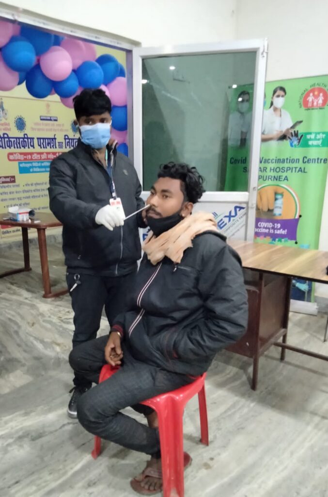 पूर्णिया(बिहार)कोरोना संक्रमण का नया वैरिएंट तेजी से फैल रहा है। जिससे ज्यादा लोग संक्रमित हो रहे हैं। नए वैरिएंट के प्रभाव को रोकने के लिए जिला प्रशासन तथा स्वास्थ्य विभाग द्वारा पूरी तत्परता से विभिन्न अभियान चलाया जा रहा है। जिले में लोगों की कोरोना जांच के लिए जगह-जगह जांच कैम्प खोले गए हैं।जांच रिपोर्ट संक्रमित आने पर लोगों को होम आइसोलेशन में रखा जाता है। उन्हें संक्रमण से उबरने के लिए तत्काल आवश्यक मेडिसिन किट दी जा रही है। इतना ही नहीं जिला प्रशासन द्वारा जिले के सभी मुख्य आवागमन वाले क्षेत्रों और भीड़भाड़ वाले जगहों पर मास्क चेकिंग अभियान भी चलाया जा रहा है।