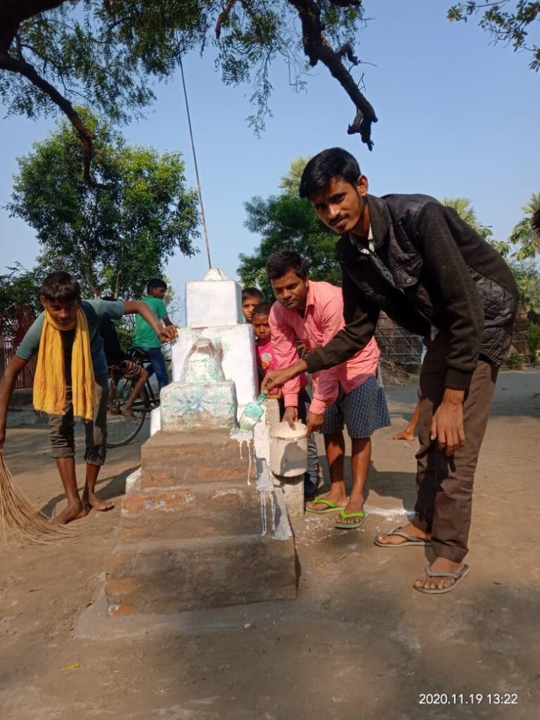 भगवानपुर हाट(सीवान)प्रखंड क्षेत्र के अलग अलग गांव में बने छठ स्थानों व घाटों की सफ़ाई में जुटे श्रद्धालु।चार दिवसीय लोक आस्था का पर्व छठ पूजा की तैयारी में श्रद्धालु भक्तिभाव से लग गए है।कहि नदी किनारे बने छठ घाट की सफाई कर रहे है तो की तलाब के किनारे बने घाट की सफाई के साथ छठ के लिए बने सिरसोख्त की रंगाई पोताई की जा रहा है।वही डेहरी गांव के छठी माई के मंदिर को बनाते हुए श्रद्धाल देखे गए। बारिश के दौरान छठी मैया के मंदिर टूट गए थे।जिसे गांव के हिन्दू व मुस्लिम दोने समुदाय के श्रद्धालुओं ने मिलकर मंदिर का निर्माण कराने में लगे हुए है। वही स्थानीय प्रतिनिधि व प्रशासन से सहयोग नहीं मिलने से श्रद्धालुओं में नाराजगी जाहिर करते हुए कहा कि जब चुनाव आता है तो सभी लोग जनता को रिझाने के लिए आते है लेकिन छठ पूजा का अवसर कोई नहीं आया।घाट की सफाई में धर्मेंद्र कुमार,माफुज अली,प्रमोद कुमार,जय प्रकाश, बाबू अली,धीरज कुमार,रंजय राज,अखिलेश कुमार,मुनमुन कुमार,उपेंनद्र कुमार,कालु कुमार,मुकेश कुमार आदि शामिल थे।
