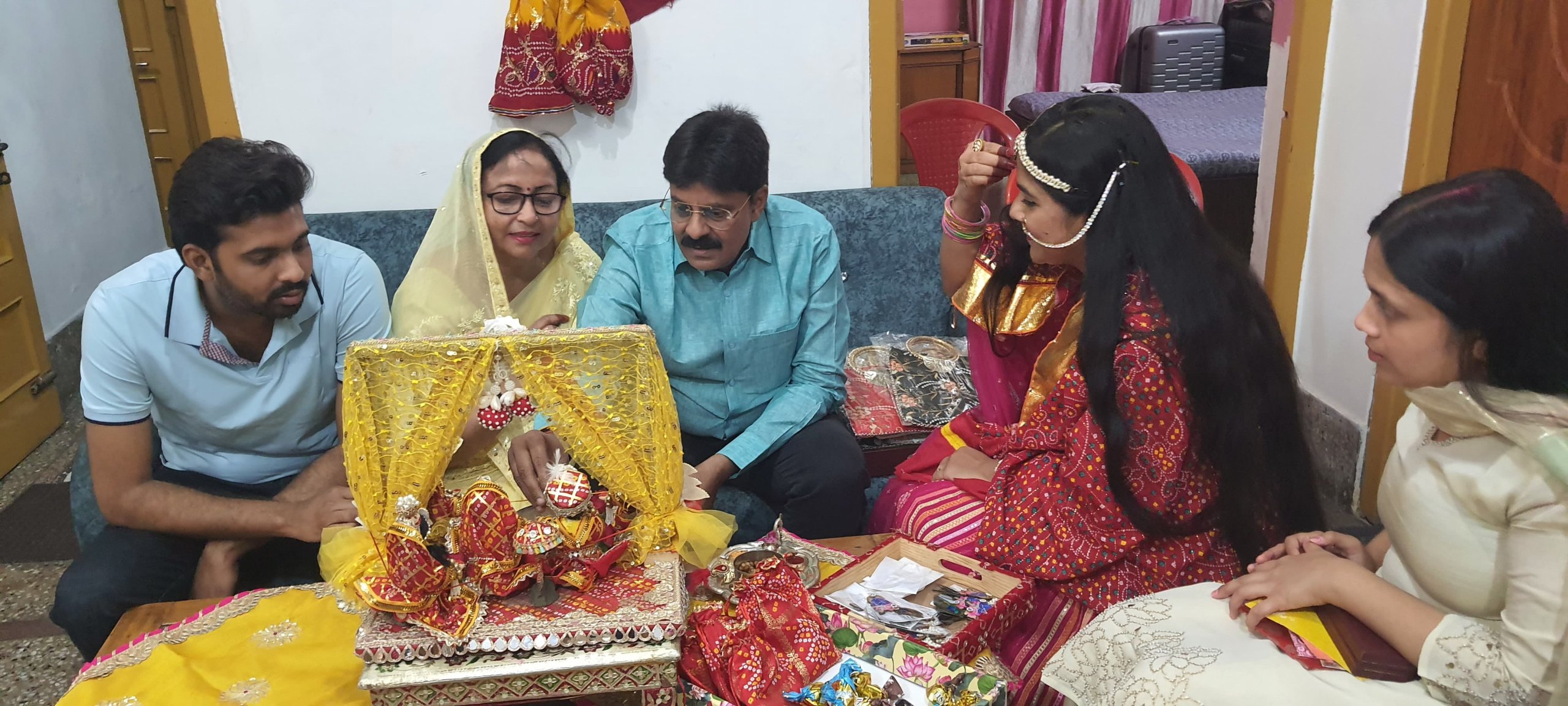 यह व्रत सुहागिनें बिना बताए रखती हैं। यह पर्व हर साल चैत्र मास की शुक्ल पक्ष की तृतीया को मनाया जाता है।श्याम बिहारी अग्रवाल ने बताया कि यह परंपरा कैसे शुरू हुई। एक बार भगवान शंकर, माता पार्वती और नारद मुनि भ्रमण पर निकले। एक गांव में पहुंचे। खबर मिलते ही गांववाले स्वागत की तैयारी में जुट गए। कुलीन घरों से पकवानों की खुशबू आने लगी। लेकिन इससे पहले गरीब महिलाएं श्रद्धा से पूजा सामग्री लेकर पहुंच गईं।