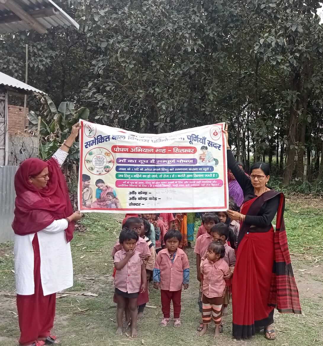पूर्णिया(बिहार)स्वस्थ पोषण ही पीढ़ियों के स्वास्थ्य का आधार होता है। इसको लेकर भारत सरकार एवं महिला और बाल विकास मंत्रालय द्वारा पोषण से संबधित जागरूकता अभियान चलाया जाता है। पोषण के प्रति यह जागरूकता अभियान राष्ट्रीय स्तर पर प्रत्येक वर्ष सितंबर महीने में संचालित किया जाता है। पोषण अभियान का लक्ष्य महत्वपूर्ण आंगनबाड़ी सेवाओं के बेहतर उपयोग और वितरण को बढ़ाकर देश के सबसे अधिक कुपोषण वाले जिलों में स्टंटिंग(नाटापन) को कम करना होता है। जिसको लेकर जिले में 1 से 30 सितंबर तक पोषण अभियान का शुभारंभ हो चुका है।