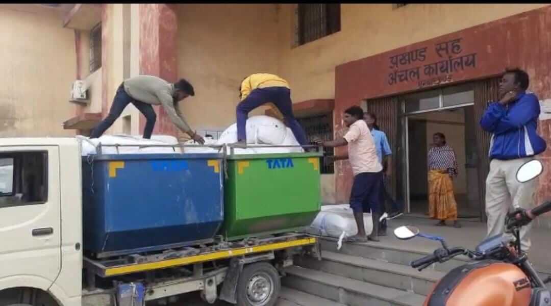 लापरवाही:धनबाद में कचरा ढ़ोने वाले वाहन से कंबल वितरण
