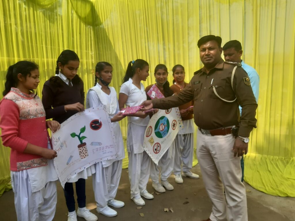 भगवानपुर हाट(सीवान)शनिवार को पुलिस सप्ताह के अवसर पर थाना परिसर में पुलिस पब्लिक के बीच सौहार्दपूर्ण संबंध स्थापित करने के उद्देश्य से नशा मुक्ति के अभियान की सफलता के लिए पेंटिंग प्रतियोगिता का आयोजन किया गया।जिसमें प्रखंड मुख्यालय में स्थिति प्राइवेट स्कूल के छात्र/छात्राओं ने भाग लिया।जिसमे छात्र/छात्राओं ने नशा मुक्ति को लेकर पीएसआई चंदनी कुमारी के देखरेख पेंटिंग बनाए।इसके उपरांत थानाध्यक्ष पंकज कुमार पेंटिंग में शामिल छात्र/छात्राओं को नोटबुक देकर सम्मानित किया।इस मौके पर एसआई जयराम सिंह, पीएसआई रजनी कुमारी,रवि कुमार,एएसआई अफताब आलम,शशिभूषण कुमार सिंह,सीपी पासवान,सुजीत पासवान सहित अन्य पुलिस कर्मी शामिल थे।