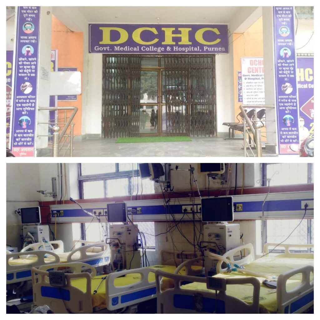 डीसीएचसी में कार्यरत एएनएम नीतू कुमारी ने बताया कि डीसीएचसी में कोविड मरीजों की देखभाल के लिए हमेशा दो डॉक्टर, दो सिस्टर और एक पारा मेडिकल कर्मी उपलब्ध रहते हैं। इसके अलावा दो डॉक्टर और फिजीशियन एनेस्थेटिक को भी तैयार रखा गया है जो आवश्यकता होने पर उपलब्ध हो सकते हैं। डीसीएचसी में एडमिट मरीजों को कोविड मेडिसिन और ऑक्सीजन(आवश्यकता अनुसार) के साथ भाप दिया जाता है। हर आठ घंटे में मरीज की स्वास्थ्य जांच की जाती है। एडमिट मरीजों को 24×7 मॉनिटर किया जाता है। हर बेड पर कॉलबेल की सुविधा है जिससे मरीज आवश्यकता होने पर सूचित कर सकते हैं। कोविड मरीजों के लिए अलग से एम्बुलेंस तैयार रखा जाता है। जो आवश्यकता अनुसार उपयोग में लाया जाता है। जानकारी हो कि जिला मुख्यालय में डीसीएचसी के अलावा बनमनखी व धमदाहा में भी कोविड केयर सेंटर कार्यरत है।