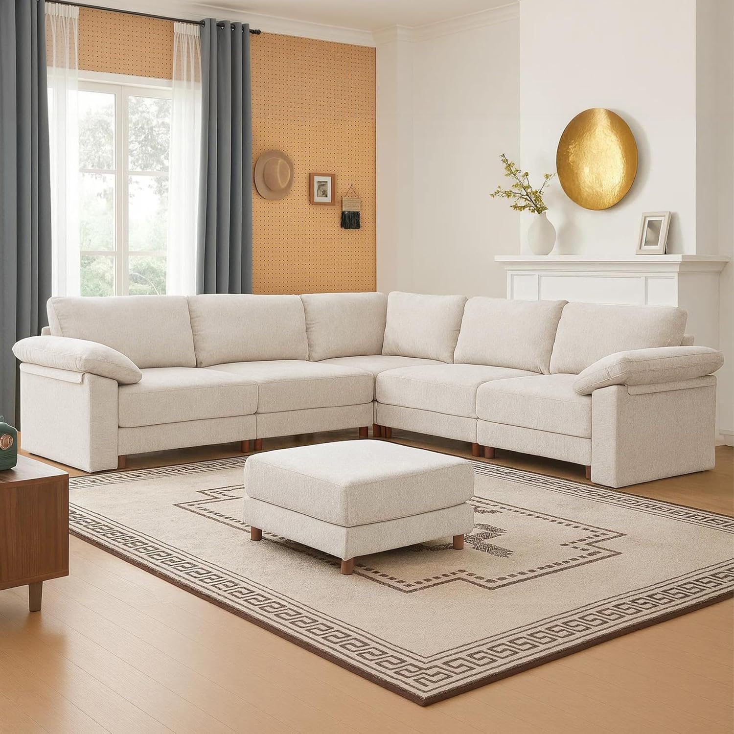 • 【FLEXIBLE L-SHAPE & V-SHAPE CONFIGURATION】Easily rearrange this versatile modular cloud sectional sofainto an L-shaped couch, V-shaped couch, or other layouts to fit your space. The modular design allows for a custom sofa L shapesetup without any tools.