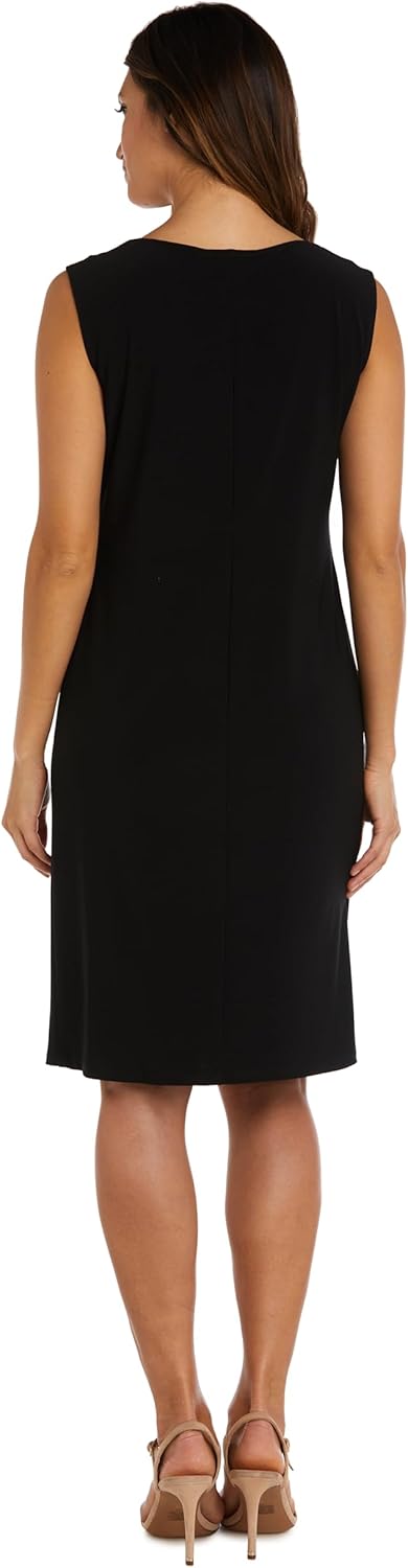 This classic ensemble from R&M Richards brings modern elegance to your wardrobe with its perfectly paired two-piece design. The sleeveless sheath dress offers a smooth, flattering fit, while the printed chiffon swing jacket adds graceful movement and subtle drama with its 3/4 sleeves. A detachable necklace completes the look, giving you an instantly styled outfit with little effort. Ideal for weddings, cocktail events, church or any special gathering, this black and white jacket dress set is both versatile and timeless. Its knee-length cut keeps the look refined, while the lightweight chiffon overlay ensures comfort and ease. With this complete set, you'll always look put-together, polished and ready for every occasion.