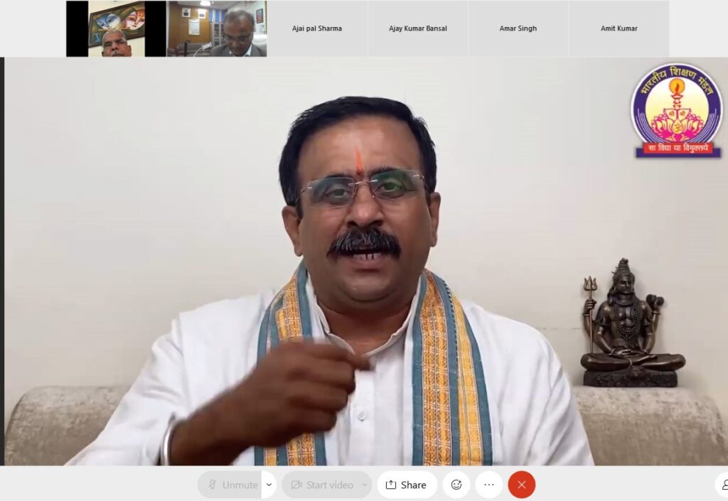हरियाणा(महेंद्रगढ़)भारतीय शिक्षण मंडल, नीति आयोग एवं हरियाणा केंद्रीय विश्वविद्यालय (हकेवि), महेंद्रगढ़ के संयुक्त तत्वाधान में राष्ट्रीय शिक्षा नीति-2020 के क्रियान्वयन में शिक्षकों की भूमिका विषय पर एक दिवसीय राष्ट्रीय वेबिनार का आयोजन मंगलवार 9 फरवरी 2021 को किया गया। वेबिनार में चौधरी बंसीलाल विश्वविद्यालय, भिवानी के उपकुलपति प्रो. राजकुमार मित्तल मुख्य अतिथि तथा भारतीय शिक्षण मंडल के अखिल भारतीय सह संपर्क प्रमुख और उत्तर क्षेत्र के पालक अधिकारी श्री पंकज नाफड़े मुख्य वक्ता के रूप में उपस्थित रहे जबकि आयोजन की अध्यक्षता हरियाणा केंद्रीय विश्वविद्यालय, महेंद्रगढ़ के कुलपति प्रो. आर.सी. कुहाड़ ने की।