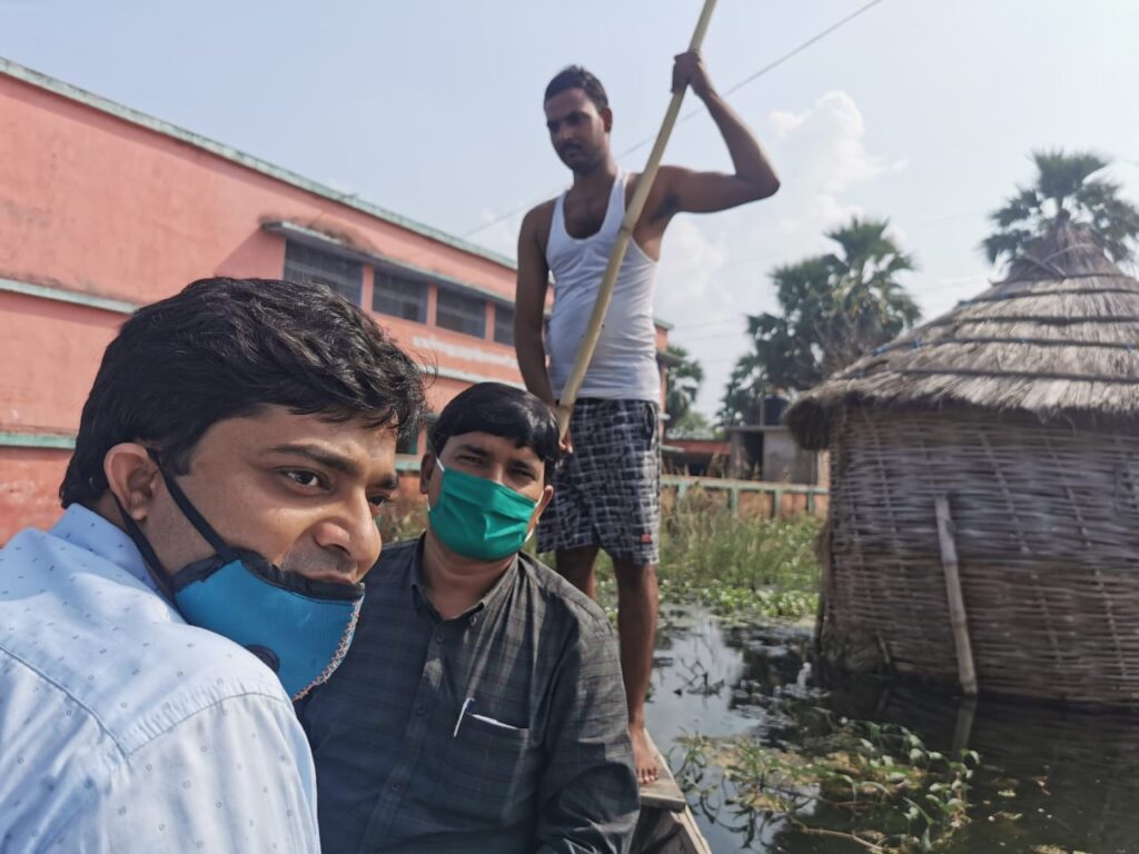 एसडीओ ने बाढ़ प्रभावित पंचायत उतरी साघर सुल्तानपुर का नाव से किया निरीक्षण