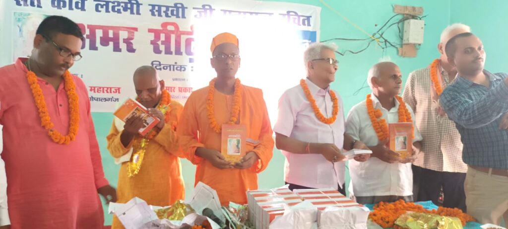 बैकुंठपुर(गोपालगंज)संत शिरोमणि कवि लक्ष्मी सखी जी महाराज के आश्रम टेरूवां मठ पर बाबा द्वारा रचित और मेरे द्वारा संपादित महान ग्रन्थ “अमर सीढ़ी” का विमोचन अध्यात्म और साहित्य के मर्मज्ञ स्वामी अतिदेवानंद महाराज तथा श्री ब्रजेंद्र कुमार सिन्हा के कर कमलों द्वारा टेरूवां मठ पर हुआ। इस अवसर पर मठाधीश श्री जनार्दन सखी जी महाराज ने ,”अमर सीढ़ी “के अमर भजन को गाकर लोगो को मंत्रमुग्ध कर दिया। रामकृष्ण मिशन के सचिव स्वामि अतिदेवा नंद महाराज ने बाबा के साहित्य की भूरि भूरि प्रशंसा की और बाबा के आश्रम के नजदीक एक गरीब परिवार के बच्चों के लिए एक विद्यालय खोलने के लिए पहल की।