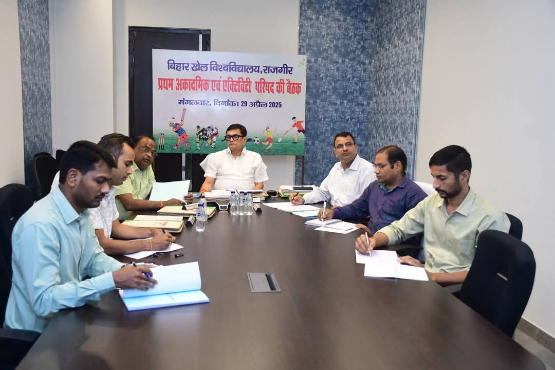 राजगीर:बिहार खेल विश्वविद्यालय में मंगलवार को पहली एकेडमिक और एक्टिविटी परिषद की बैठक हुई। बैठक की अध्यक्षता कुलपति शिशिर सिन्हा ने की। यह परिषद विश्वविद्यालय की स्थापना के बाद शैक्षणिक मामलों की सर्वोच्च निकाय है। बैठक में कई अहम फैसले लिए गए।