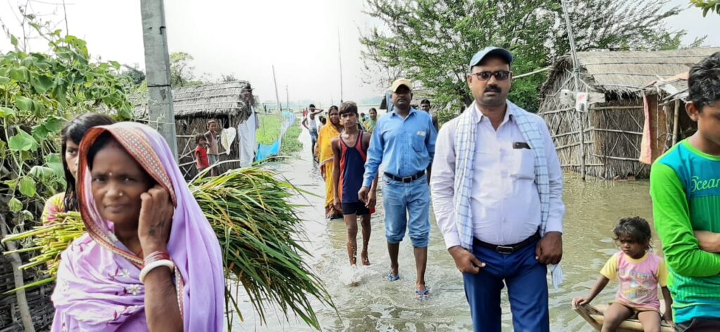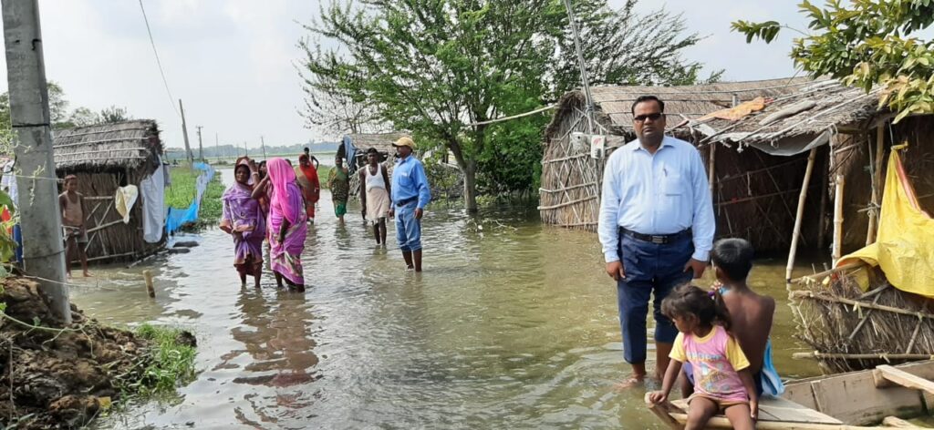 जलनिकासी का मार्ग अवरुद्ध होने से बड़ैला चंवर के किनारे के लोगों के घरों में घुसा पानी