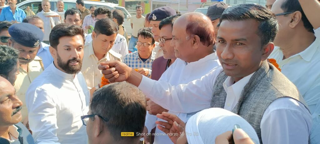 सांसद चिराग पासवान के मलमलिया चौक पर कार्यकर्ताओं ने स्वागत किया
