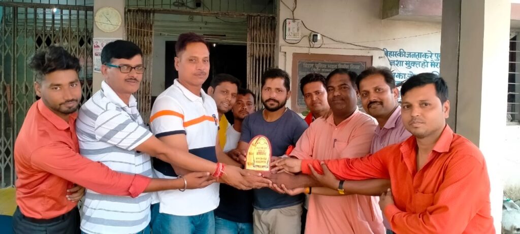 पूजा समिति ने थानाध्यक्ष को मेमोंटो देकर किया गया सम्मानित